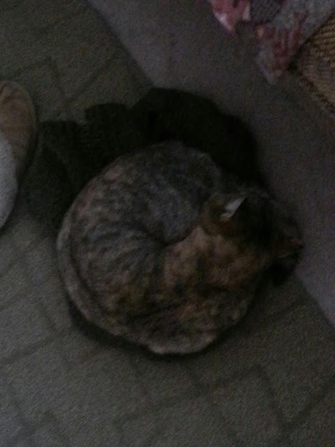 Well hellloooooo Mr. Spitty Cat! Sorry it's a bit fuzzy, That Woman was enjoying her apres work nosh.